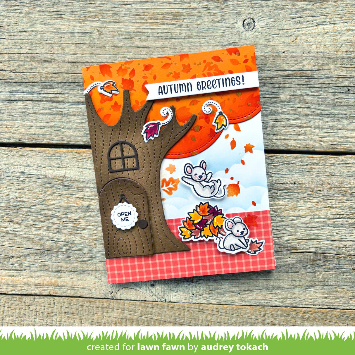 Coordinating set ideas: Change the look of your door with Knock Knock, Who's There? Rectangle Door Add-On. Knock Knock, Who’s There? Tree Add-On transforms this interactive set into a playful treehouse scene perfect for your favorite critters. Add interactive instructions with a sentiment from Push Here to finish off your project.