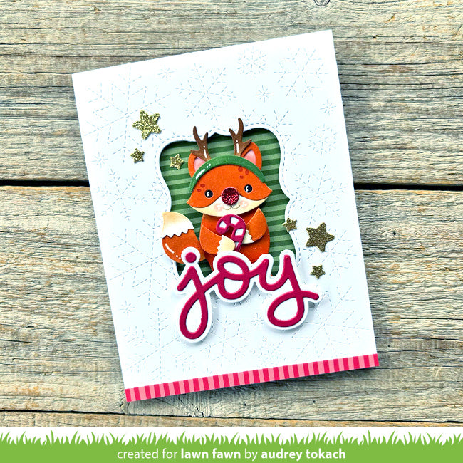 This add-on to Center Picture Window Card creates a festive window with stitching details for the inside of your card. This set includes a pine tree and seasonal wreath accents.
