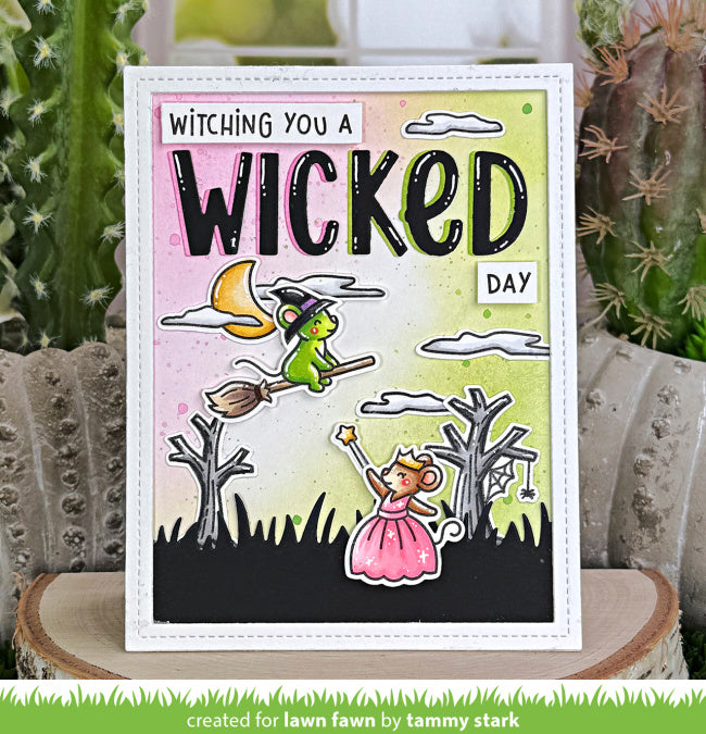 ring a magical twist to your Halloween crafting with the Lawn Fawn Halloween Mice Stamps Set. Featuring adorable mice dressed as both wicked and good witches, this playful collection adds charm and whimsy to cards, scrapbooks, and decorations. Perfect for creating spooky yet sweet scenes that celebrate the fun side of the season.