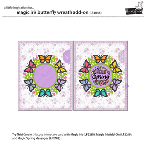 Pair this add-on set with Magic Iris and Magic Iris Add-On to create a project featuring a fluttery butterfly wreath frame that opens to reveal a surprise! This wreath frame is also an amazing card feature on its own!