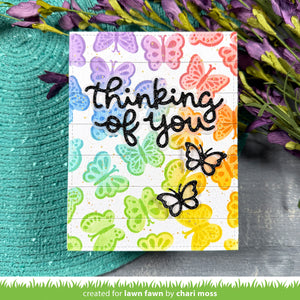 Transform your cardstock into heartfelt messages with this elegant scripty sentiment die! Whether you choose rich, shimmering cardstock or eye-catching patterned paper, you'll craft a fresh "thinking of you" design every single time. Perfect for adding that personal touch to cards and creative projects that truly stand out.
