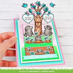 Coordinating set ideas: Use your favorite hillside to create the perfect landscape for your cuties to dig. Add a Heart Garden Border accent for an added bit of sweet in your scene. Make a quick and easy card with a giant sentiment like Giant Outlined Love and your favorite mole friend!