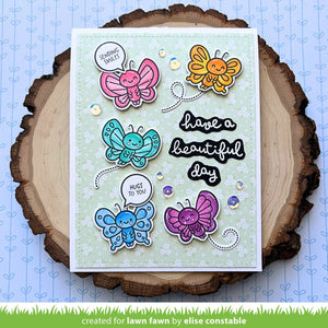 It’s no surprise, we like big butterflies! You’ll spread smiles and heart flutters with every card you create with this adorable set! Use the speech bubble and the tiny sentiments to coordinate with any occasion. The playful flight trails add lots of whimsical movement to your scene, too! Create personalized butterfly sentiments using the Henry’s Build-a-Sentiment: Butterfly set.