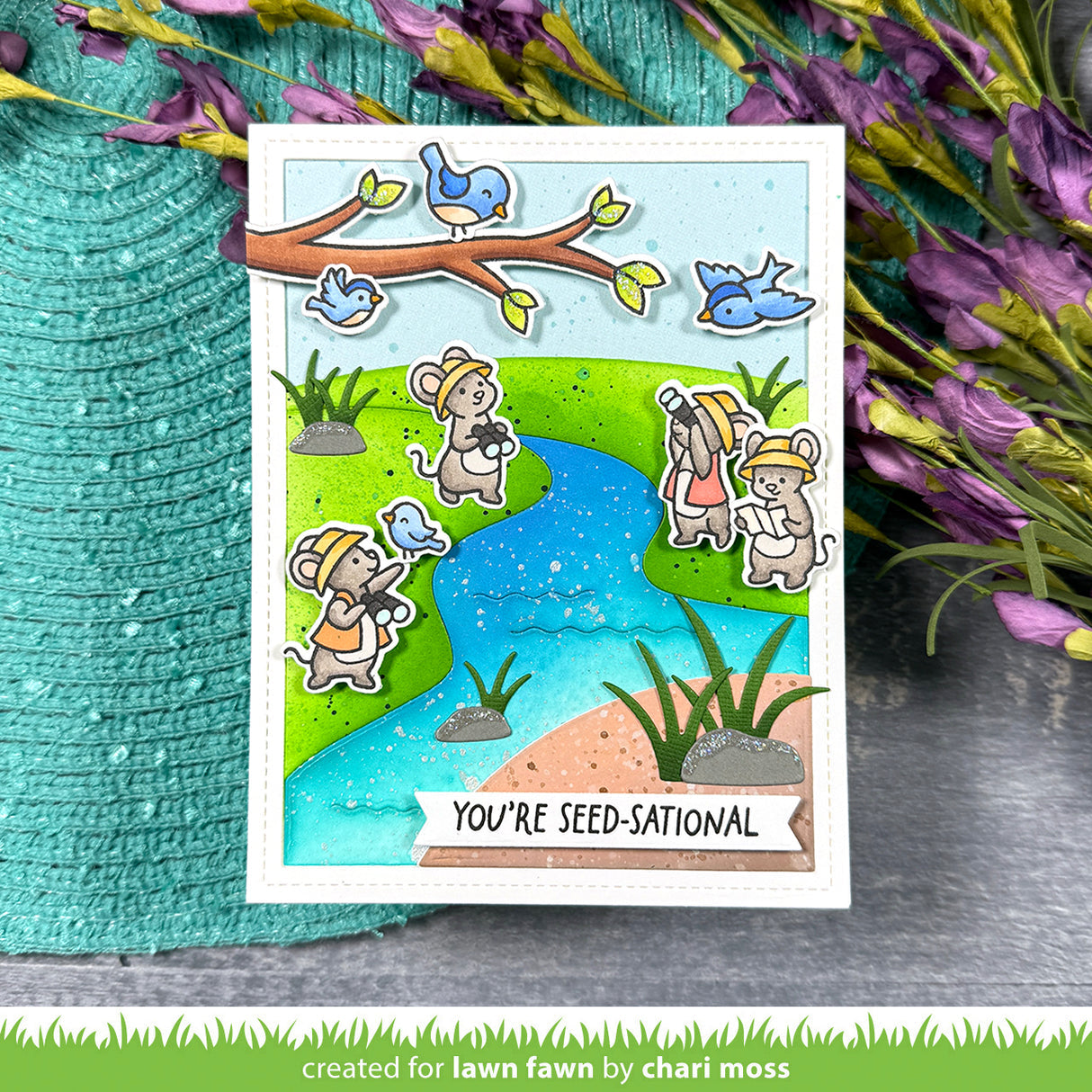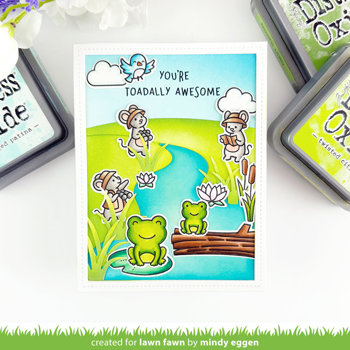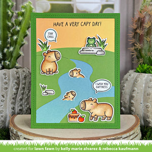 Coordinating set ideas: This backdrop is perfect for your favorite water-loving critters. Invite the cuddly critters from Capybaras! and Capybaras! Add-On for some fun in the sun! Wood You Be Mine, So Dam Much, Toadally Awesome, and Swan Soiree are also fantastic additions to this backdrop!